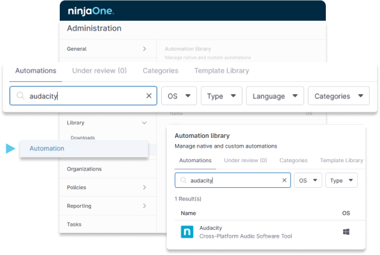 NinjaOne enables you to run automations behind the scenes on-demand, on-schedule, or in response to performance thresholds and state changes, ensuring automations run only when they are necessary and convenient. Our policy management engine provides the ability to flexibly roll out changes across organizations, sites, dynamic groups, and individual endpoints. NinjaOne’s IT automation platform enables automation for: