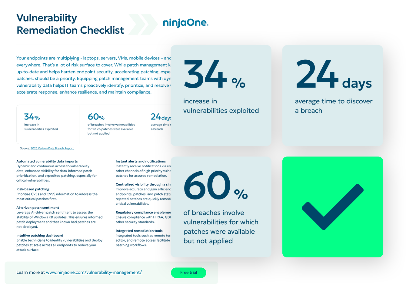 Automating patch management and prioritizing based on risk is a major revolution in reducing risk. NinjaOne is effectively removing the lag time between aggregating vulnerability data and initiating patching, so we can implement the most critical patches more quickly. As a result, we’re more efficient and secure.”